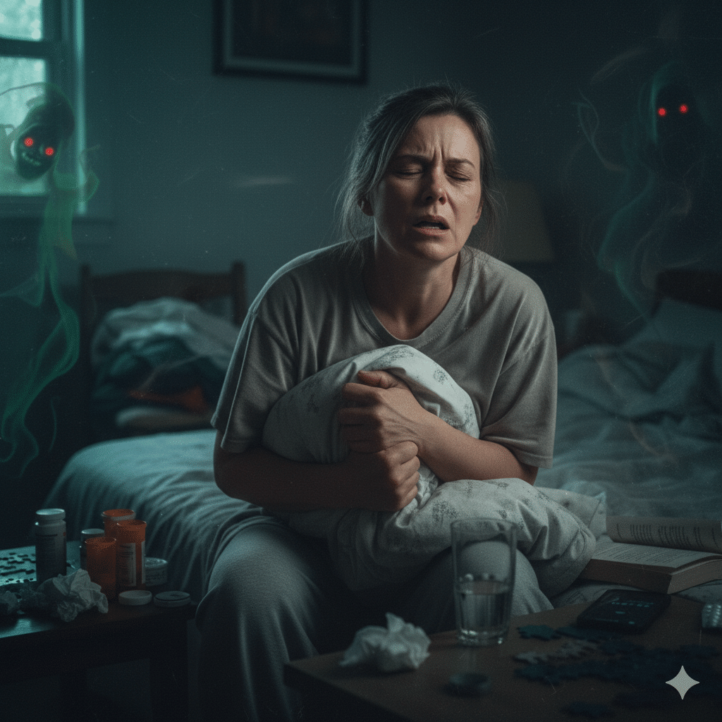 離脱症状:不安、不眠の悪化、震え、発汗、感覚過敏など